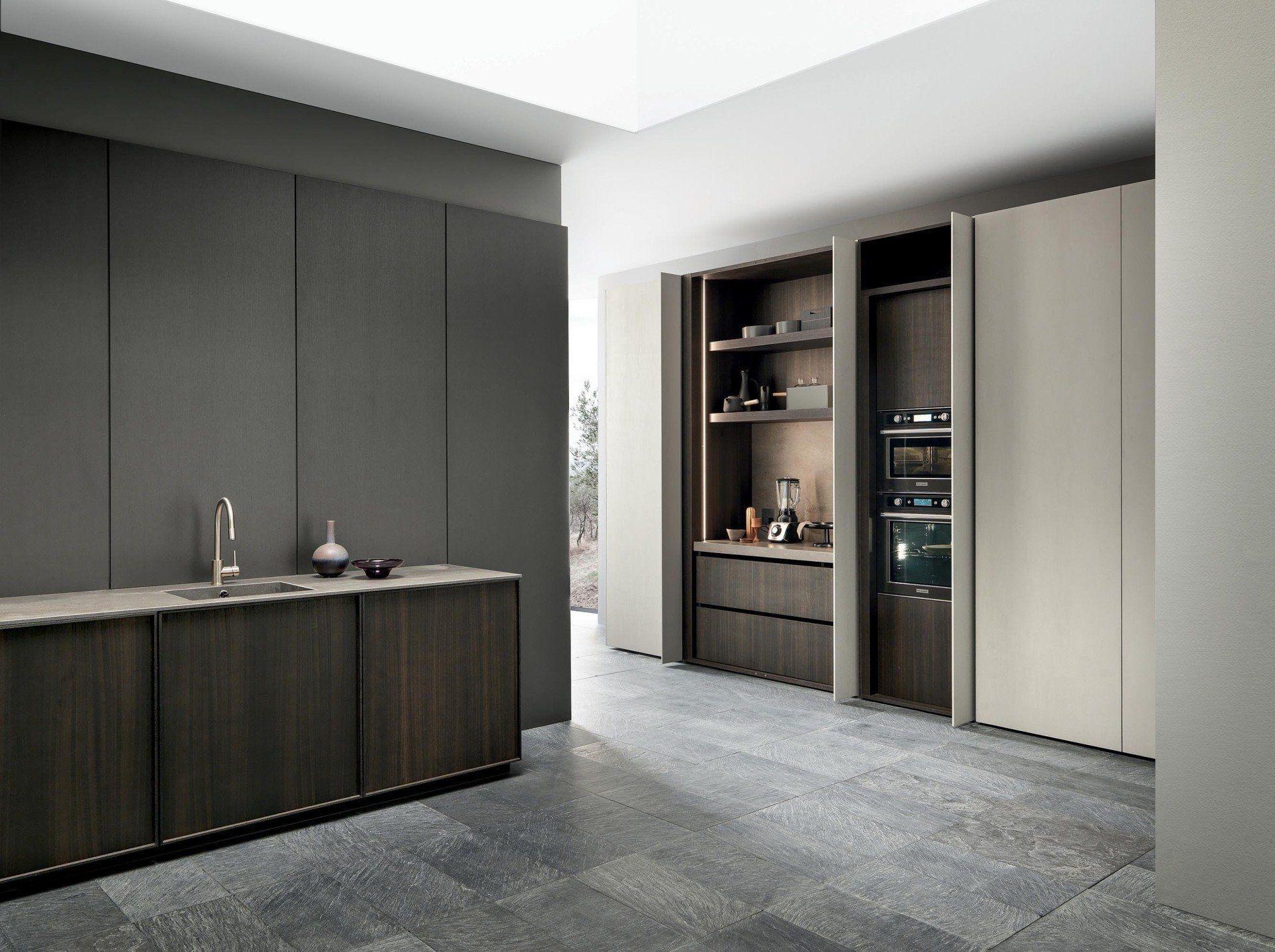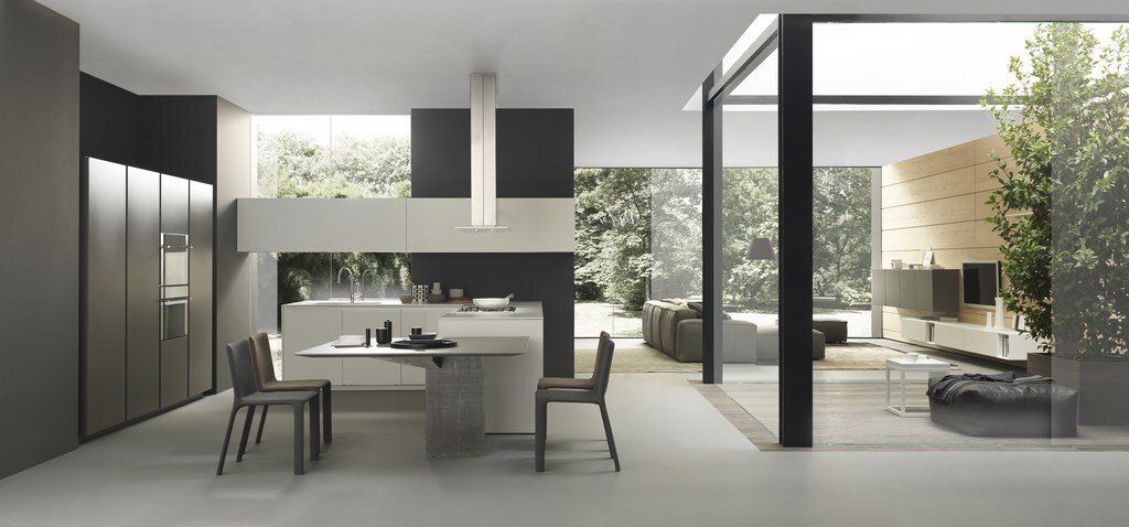 Il nuovo ordine funzionale della cucina offre nuove soluzioni visive: i volumi paralleli, le linee rette, la sintesi del disegno realizzano nuove geometrie.